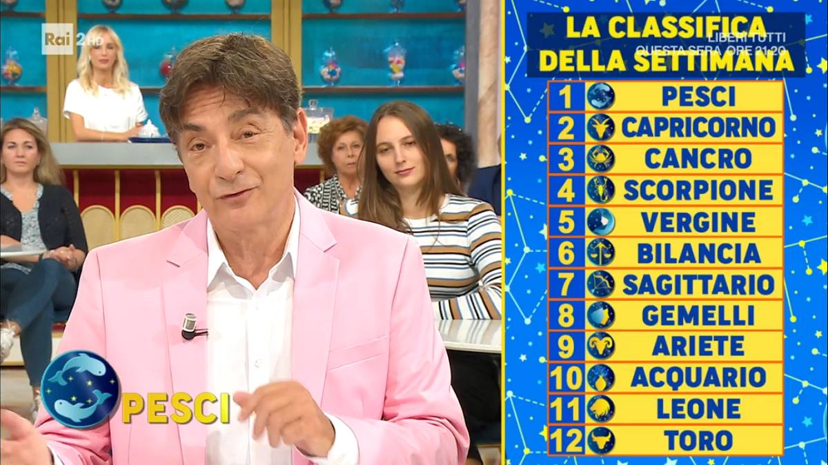 E’ iniziata un’altra settimana de I Fatti Vostri con Tiberio Timperi, Anna Falchi e Flora Canto che hanno intrattenuto il pubblico di Rai2 con rubriche, giochi e interviste. Uno dei momenti più seguiti e attesi della storica trasmissione di Rai2 è l’oroscopo di Paolo Fox che ha svelato la classifica della settimana dal 30 ottobre al 5 novembre.