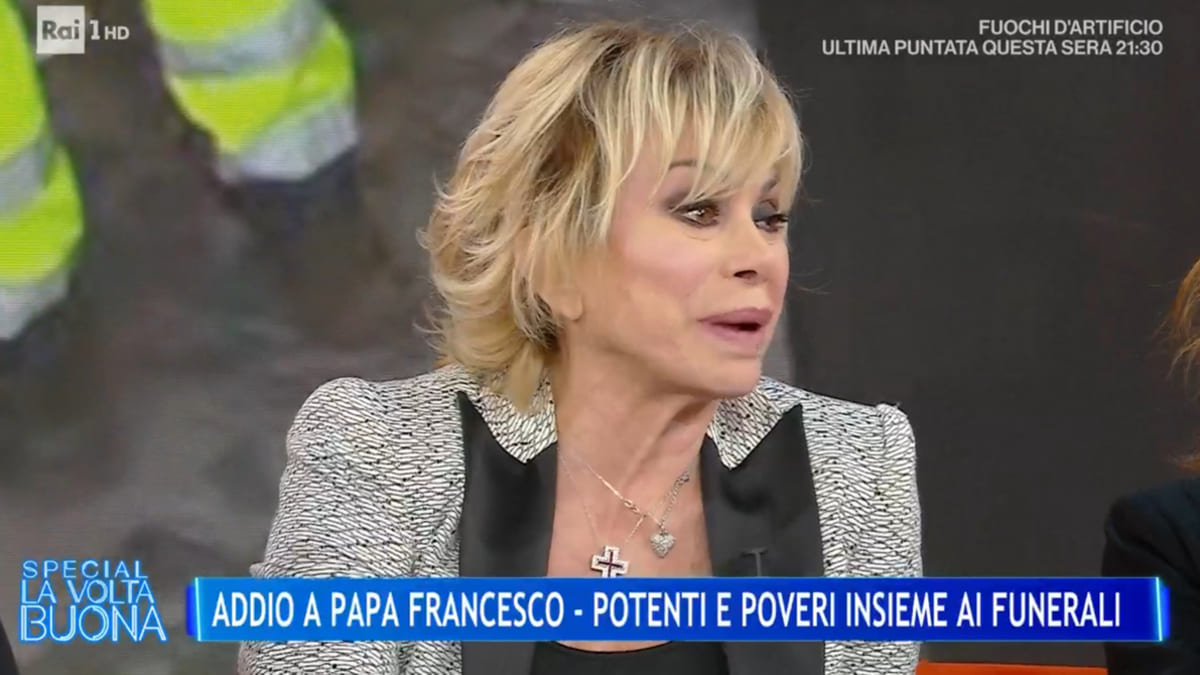 L’ospite a La volta buona non è riuscita a trattenere l’emozione parlando del Pontefice