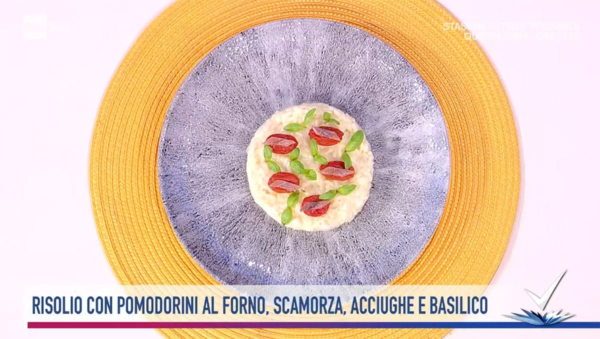 Ricetta Detto Fatto di oggi 22 febbraio: risolio con pomodorini, scamorza e acciughe di Ilario Vinciguerra