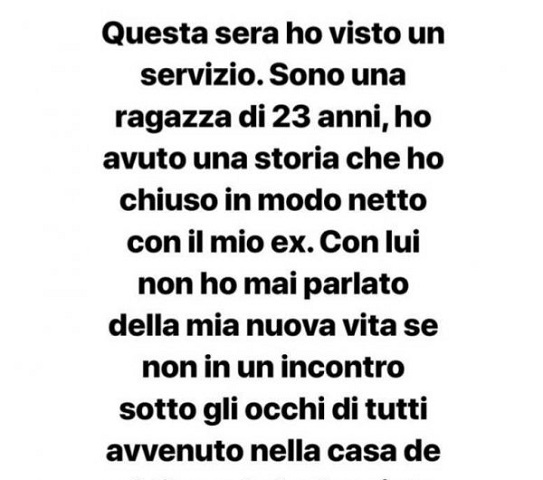 Paola Di Benedetto ha replicato alle accuse di Striscia la Notizia e alle parole dette da Matteo Gentili durante il nero del Grande Fratello caricando sulle sue Instagram Stories un’immagine nera su cui ha scritto un vero e proprio sfogo. L’ex naufraga dell’Isola dei Famosi ha dichiarato che ieri sera ha visto il servizio del programma di Antonio Ricci e ha poi precisato di essere solo una ragazza di 23 anni che ha avuto una storia che ha chiuso in modo netto con il suo ex. Paola ha poi aggiunto che con Matteo non aveva mai parlato della sua nuova vita insieme a Francesco Monte se non in un incontro avvenuto sotto gli occhi di tutti nella Casa del GF. La Di Benedetto ha quindi ammesso che quando aveva lasciato L’Isola per raggiungere il tronista di Uomini e Donne lei non aveva mai visto ne sentito Gentili, come invece lui aveva detto, e ha anche sottolineato che lui aveva sempre ripetuto tale versione fino a martedì. Infine, l’ex Madre Natura di Ciao Darwin ha così concluso il suo discorso: