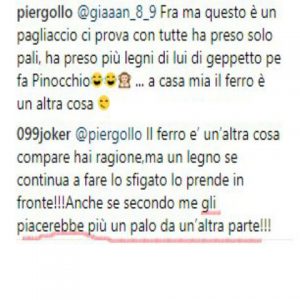 “Fra ma questo è un pagliaccio, ci prova con tutte ha preso solo pali. Ha preso più legni lui di Geppetto pe fa Pinocchio. A casa mia il ferro è un’altra cosa”.