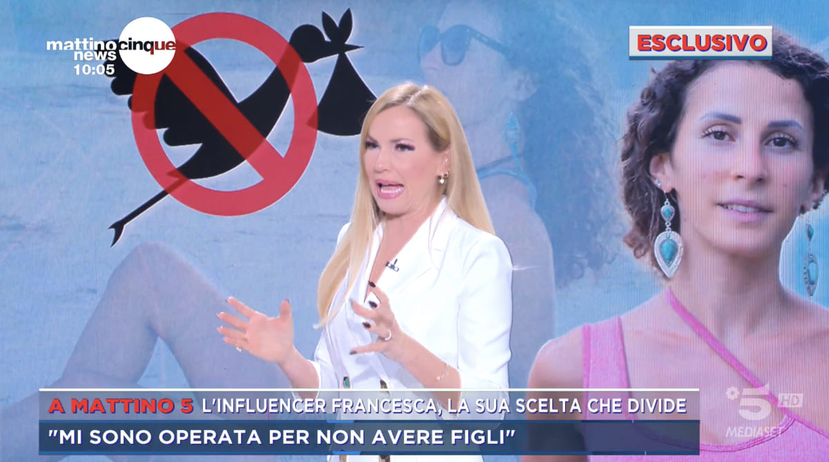 La conduttrice di Mattino 5, appena ha ascoltato l’uscita del suo ospite sul ‘caso Francesca Guacci’, è immediatamente intervenuta redarguendolo. Difatti la Panicucci ha fatto capire a Roberto Poletti di aver assolutamente detto una cosa fuori luogo asserendo che l’influencer avrebbe sfruttato l’opportunità di operarsi per non diventare mamma in futuro: