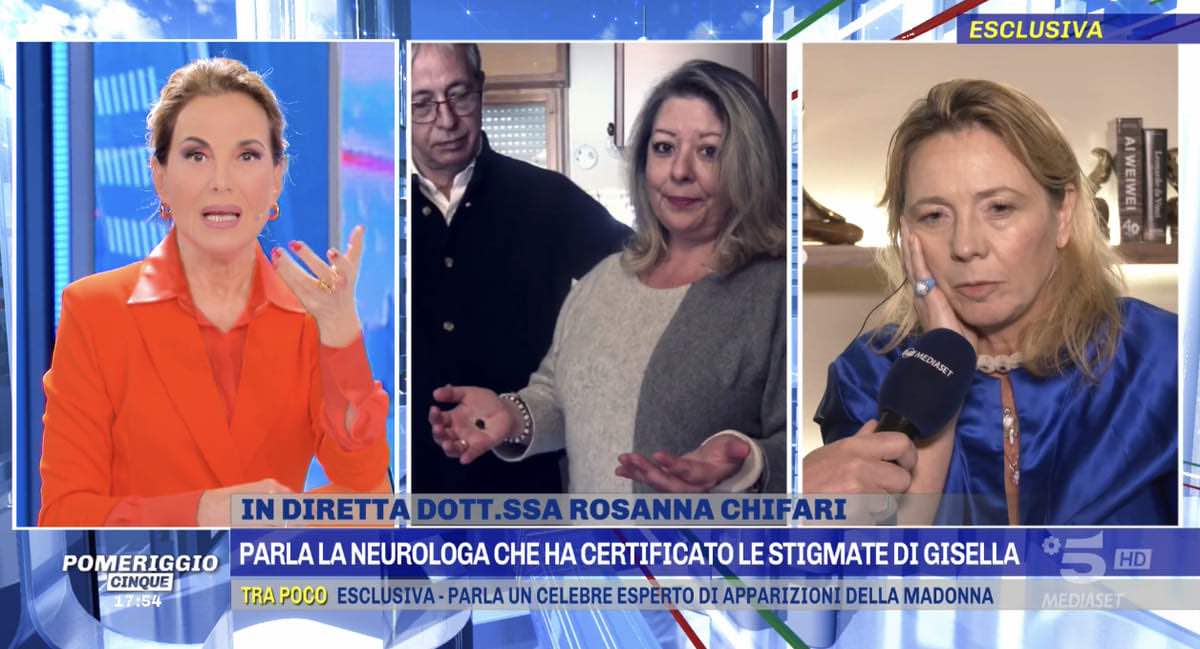 Barbara d’Urso anche oggi ha dedicato quasi tutta la sua trasmissione al caso legato alla presunta veggente Gisella Cardia con annesse polemiche e tanti dubbi. In questa occasione è stata chiamata a parlare una neurologa, che ha visto e certificato le stigmate della Cardia. Quest’ultima ha subito esordito attaccando duramente Don Patrizio in collegamento dando vita ad un accesissimo scontro in diretta. Ma non è finita qua perchè quest’ultima ha poi cercato di spiegare cosa ha visto sulle mani e sul corpo della presunta veggente: “La certificazione l’avrebbe potuta fare anche uno studente del terzo anno…” Ad un certo punto ha preso la parola Samantha De Grenet desiderosa di fare una domanda alla signora. E anche la presentatrice ha cercato di inserirsi nella discussione. L”ospite si è però immediatamente indispettita, chiedendo di finire di parlare: “Scusi, non ho finito…Mi ha chiesto di descrivere, quindi mi faccia finire…” La d’Urso, visibilmente infastidita, ha immediatamente ribattuto: “Io veramente le avevo chiesto di descrivere ciò che aveva visto, ma ascolto…”