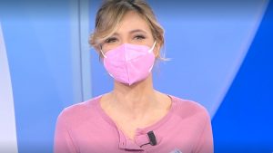 Monica Giandotti conduce Unomattina indossando la mascherina Ffp2: è entrata in contatto con una...