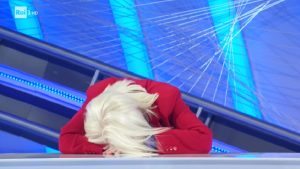 Loretta Goggi si accascia per le risate a Top 10. Carlo Conti imbarazzato
